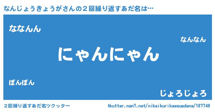 | 欧米人風あだ名 | 『ウサインなんじょうきょうが』 |
