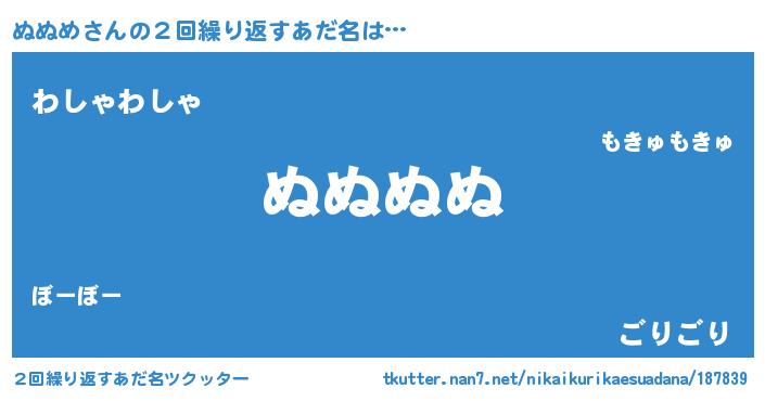 | ポケモン風あだ名 | 『ヌヌチュウ』『ヌヌキング』 |