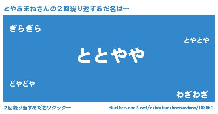 | 意味不明あだ名 | 『とやあまねフォーエバー』 |