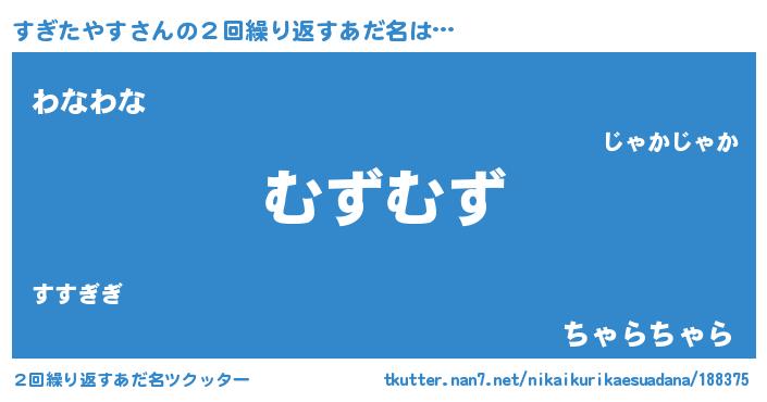 | 意味不明あだ名 | 『自称すぎたやす』『ニラ科すぎたやす属』 |