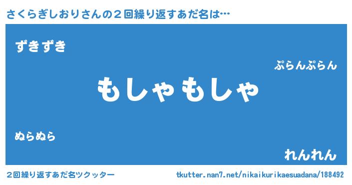 | 男性向けラノベタイトル風あだ名 | 『Re:さくらぎしおりから始める異世界生活』 |