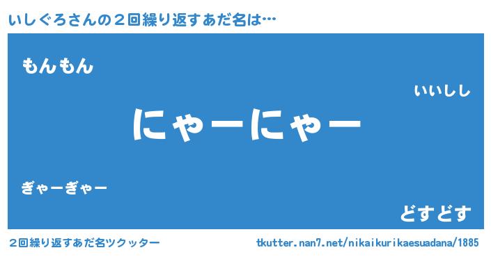 | 男性向けラノベタイトル風あだ名 | 『いしぐろの嫁は女の子じゃないと思った?』 |