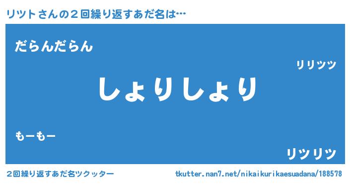 | 男性向けラノベタイトル風あだ名 | 『この素晴らしい世界にリツトを!』 |