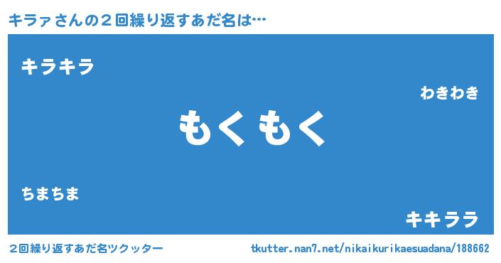 | 男性向けラノベタイトル風あだ名 | 『Re:キラァから始める異世界生活』 |
