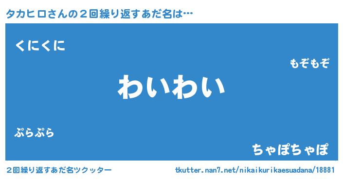 | ヒーロー風カッコイイあだ名 | 『ネオタカヒロ』『サイバー戦士タカヒロ』 |
