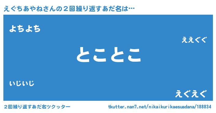 | 欧米人風あだ名 | 『えぐちあやね・ステッグマイヤー』 |