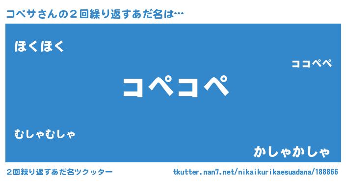 | ヒーロー風カッコイイあだ名 | 『スーパーコペサ』『慈愛の使者コペサ』 |