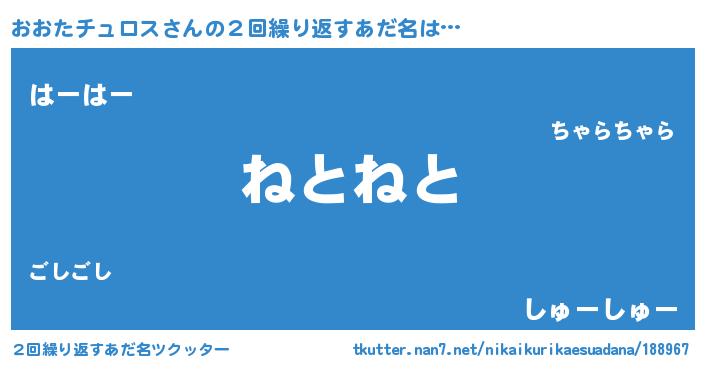 | 男性向けラノベタイトル風あだ名 | 『おおたチュロスの嫁は女の子じゃないと思った?』 |