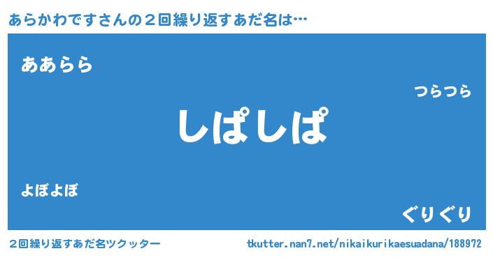 | 意味不明あだ名 | 『住所不定無職あらかわです(77歳)』 |