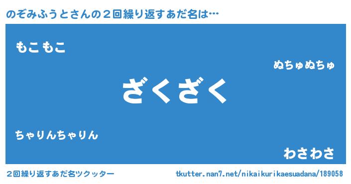 | 意味不明あだ名 | 『住所不定無職のぞみふうと(79歳)』 |