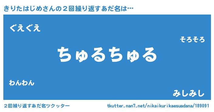 | ヘコむあだ名 | 『きりたはじめ(遠い目)』『きりにゅー』 |