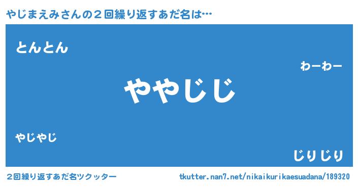 | 欧米人風あだ名 | 『アンジェラ・やじまえみ』 |