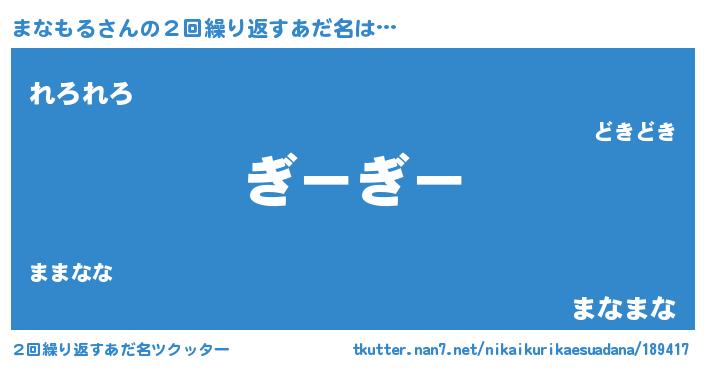 | 男性向けラノベタイトル風あだ名 | 『まなもるという概念が存在しない退屈な世界 』 |