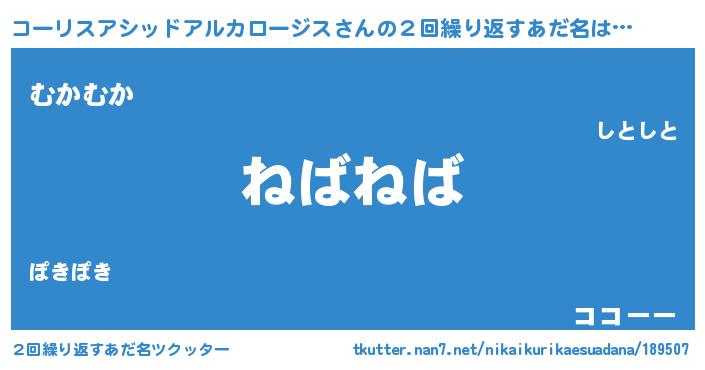 | 欧米人風あだ名 | 『ウサインコーリスアシッドアルカロージス』 |
