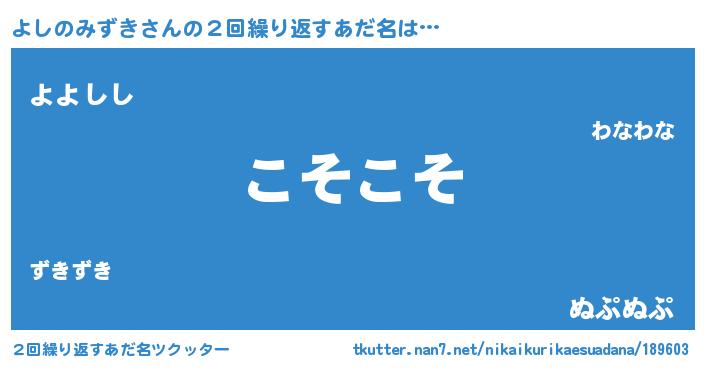 | 意味不明あだ名 | 『永久保存よしのみずき』 |