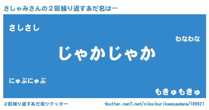 | 意味不明あだ名 | 『住所不定無職さしゃみ(84歳)』 |
