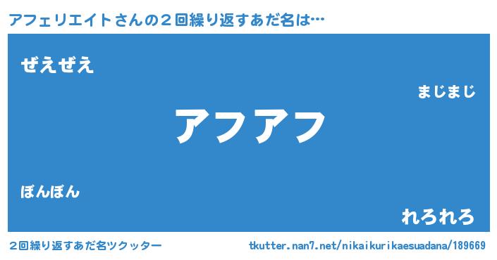 | ファンタジー風あだ名 | 『アフフェル』『ヴァルアフーナ』 |