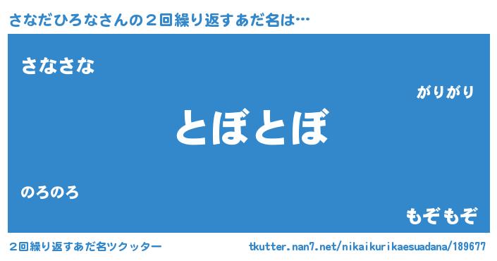 | 恥ずかしいあだ名 | 『プリティーさなだひろな』『さなちん』 |