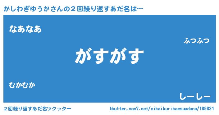 | ヘコむあだ名 | 『かしわぎゆうか(小並感)』『かし太郎』 |