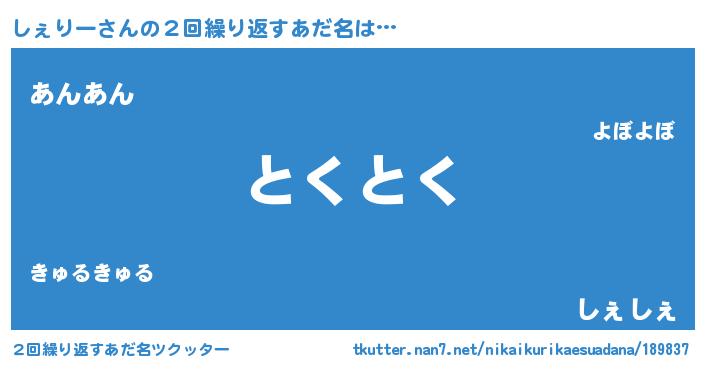| 欧米人風あだ名 | 『しぇりー・ステッグマイヤー』 |