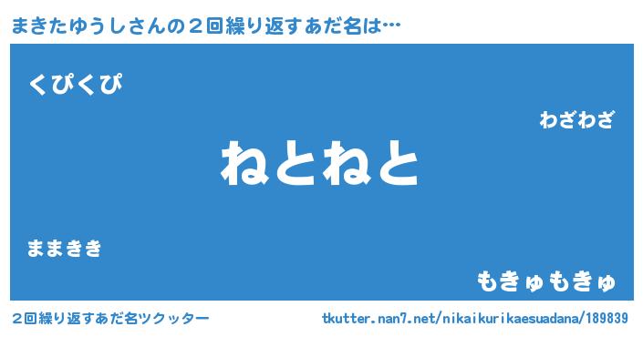 | 男性向けラノベタイトル風あだ名 | 『まきたゆうしの嫁は女の子じゃないと思った?』 |