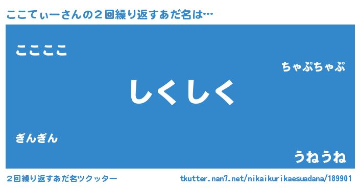 | 意味不明あだ名 | 『住所不定無職ここてぃー(98歳)』 |