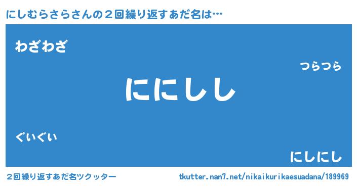 | 肩書あだ名 | 『にしむらさら総理大臣』 |