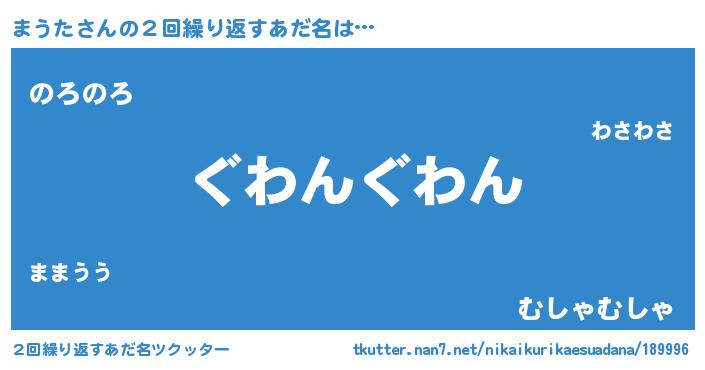 | 意味不明あだ名 | 『永久保存まうた』『自称まうた』 |