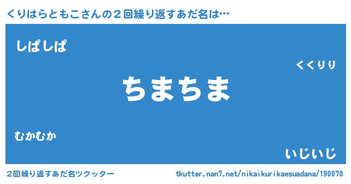 | 意味不明あだ名 | 『住所不定無職くりはらともこ(81歳)』 |