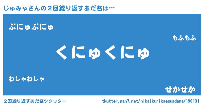 | 意味不明あだ名 | 『永久保存じゅみゃ』『自称じゅみゃ』 |