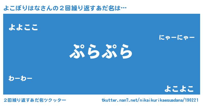 | 欧米人風あだ名 | 『ダニエルよこぼりはな』 |
