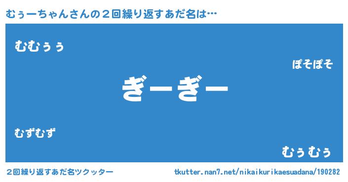 | 男性向けラノベタイトル風あだ名 | 『むぅーちゃんという概念が存在しない退屈な世界 』 |
