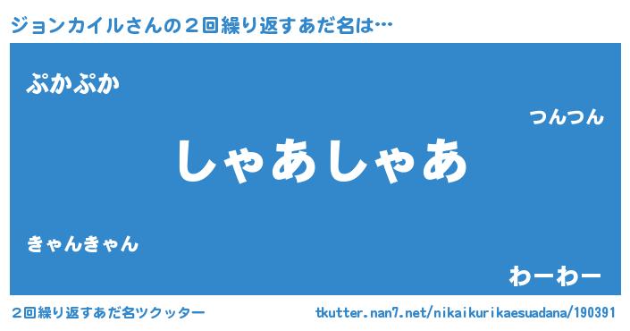 | 意味不明あだ名 | 『住所不定無職ジョンカイル(89歳)』 |