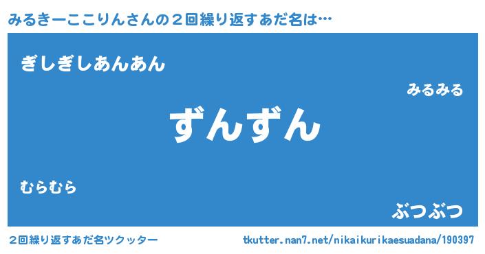 | 欧米人風あだ名 | 『ダレノガレみるきーここりん』 |