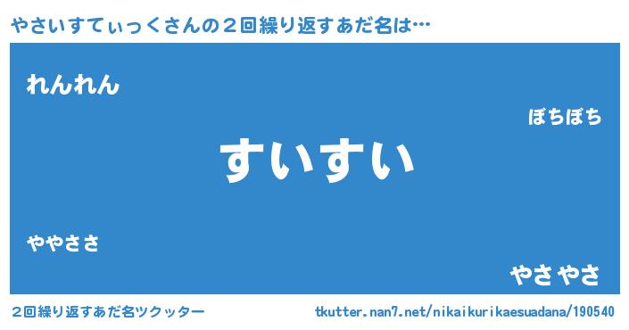| 意味不明あだ名 | 『住所不定無職やさいすてぃっく(93歳)』 |