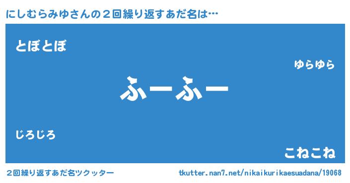 | 肩書あだ名 | 『にしむらみゆ教授』『にしむらみゆ艦長』 |