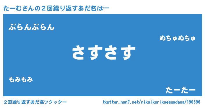 | 男性向けラノベタイトル風あだ名 | 『魔弾の王とたーむ』『たーむの憂鬱』 |