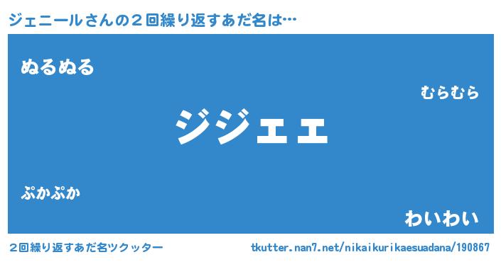 | 意味不明あだ名 | 『ジェニールフォーエバー』 |