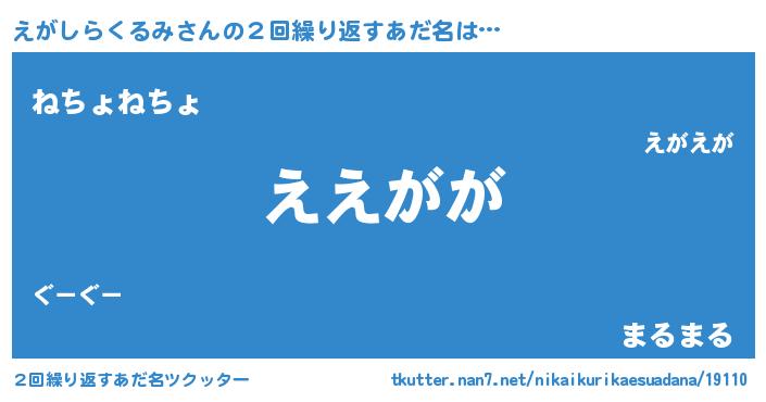 | 意味不明あだ名 | 『えがしらくるみフォーエバー』 |