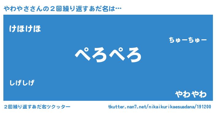 | ヒーロー風カッコイイあだ名 | 『慈愛の使者やわやさ』『ネオヤワヤサ』 |