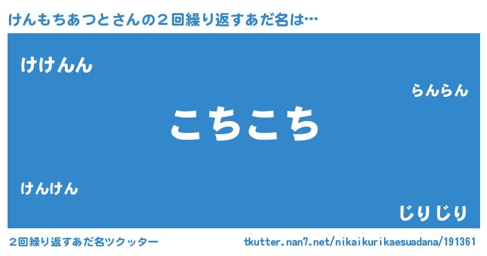 | ヘコむあだ名 | 『けんもちあつと(爆)』『酢こんぶ』 |