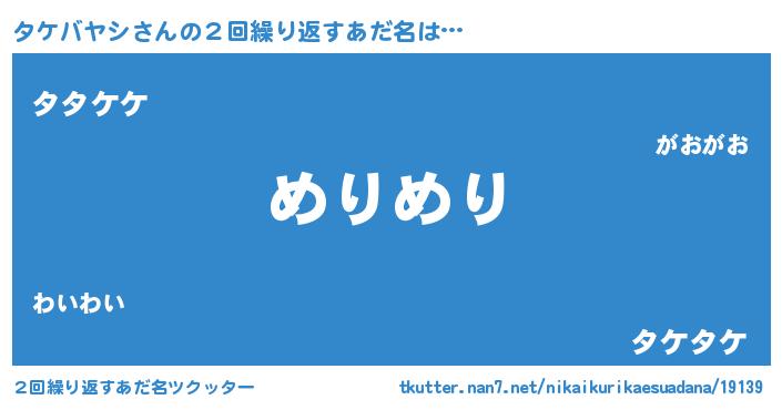 | ファンタジー風あだ名 | 『ゼタケトゥ』『エターナルタケバヤシー』 |