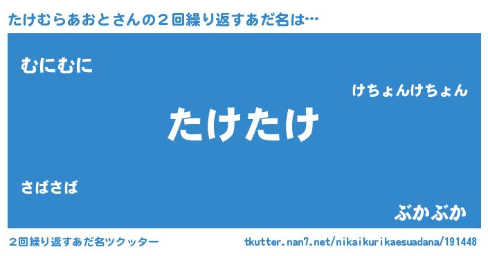 | ポケモン風あだ名 | 『タケチュウ』『タケゴンZ』 |