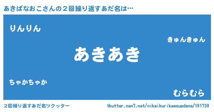 | 肩書あだ名 | 『あきばなおこCEO』『あきばなおこ中尉』 |