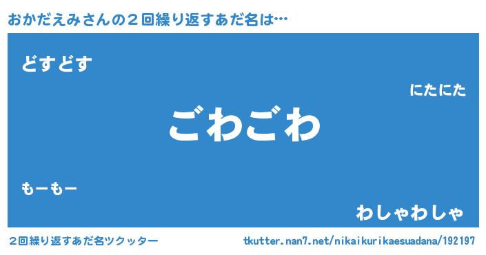| 欧米人風あだ名 | 『ダルビッシュおかだえみ』 |