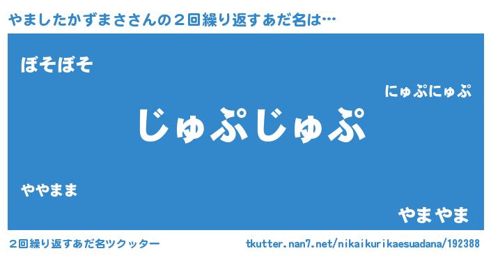 | 意味不明あだ名 | 『住所不定無職やましたかずまさ(81歳)』 |