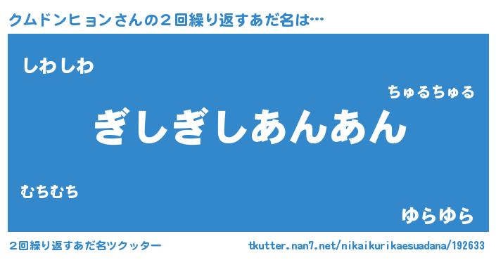 | 男性向けラノベタイトル風あだ名 | 『クムドンヒョンという概念が存在しない退屈な世界 』 |