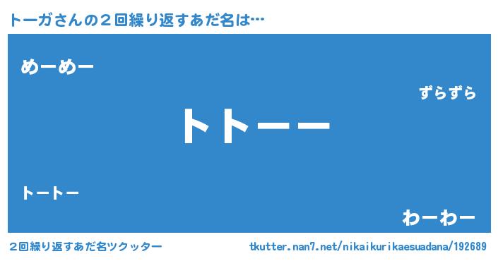 | 欧米人風あだ名 | 『トーガクリステル』『トリンドルトーガ』 |