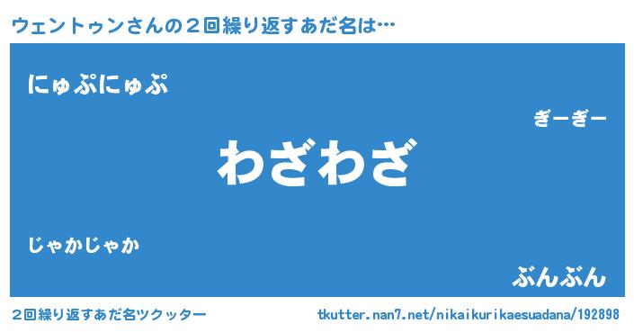 | ポケモン風あだ名 | 『ウェキング』『ヒウェントゥン』 |