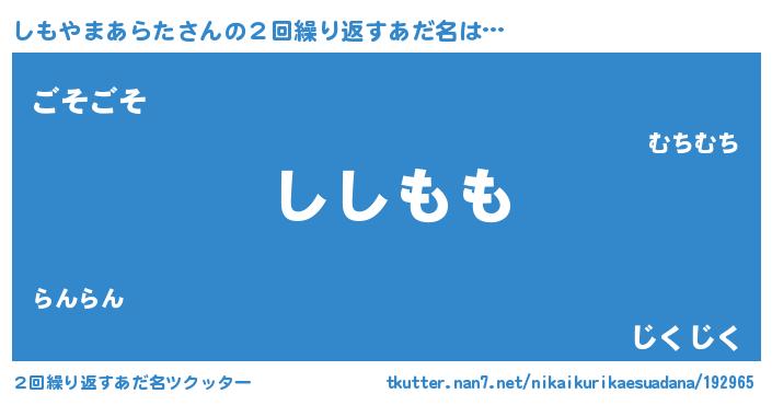 | 意味不明あだ名 | 『しもやまあらたフォーエバー』 |